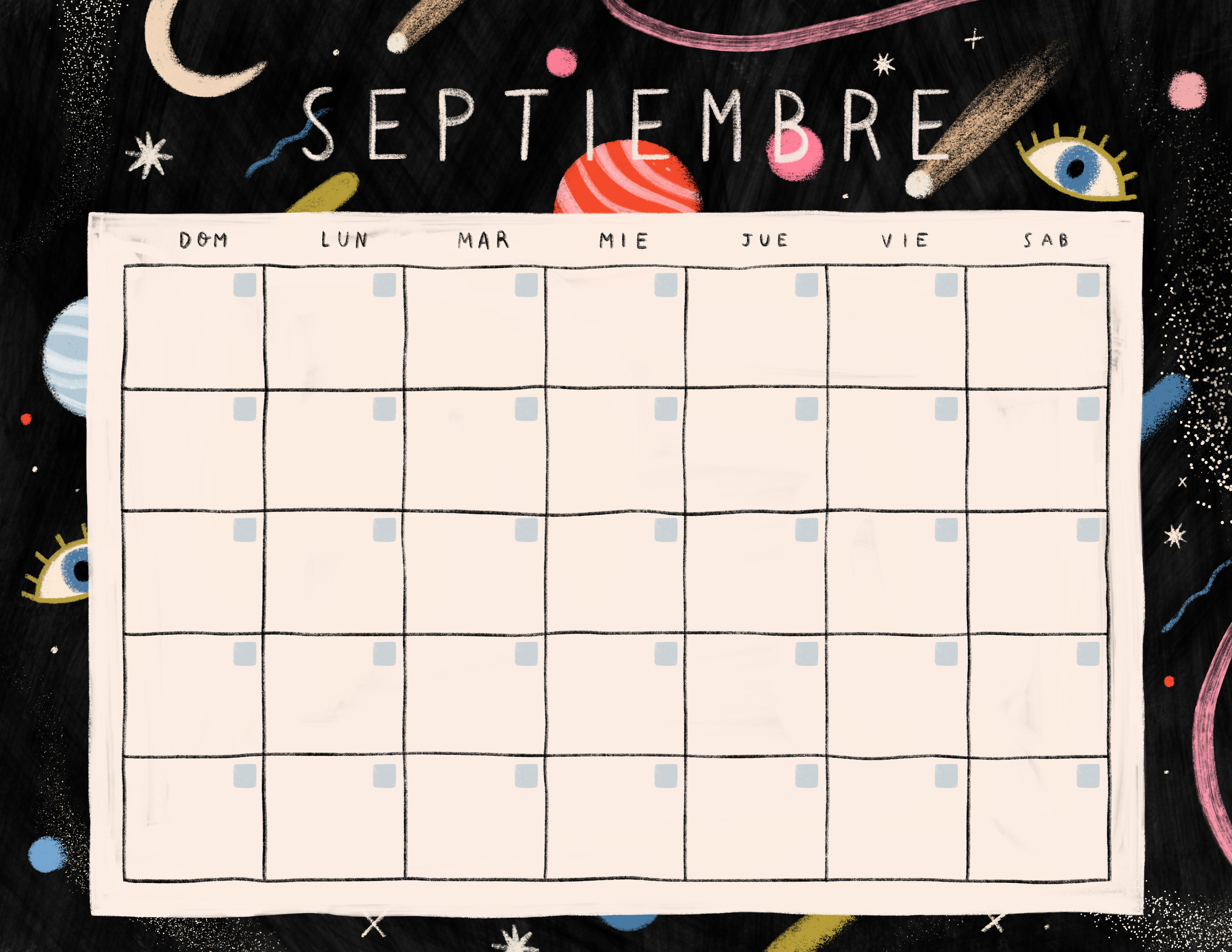 Como fue prometido, aquí está el calendario de este mes. Pregunté a través de mis historias de Instagram qué tipo de temas les gustaría para el mes de Septiembre. Me encantaron sus sugerencias y trataré de hacer algunas de ellas durante los próximos meses. Por ahora, elegí el tema que resonó más conmigo: EL UNIVERSO. Creo que muchos nos preguntamos si tiene alguna relación con el destino de nuestras vidas y si nos desea un buen futuro. Espero que les guste :)